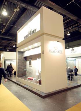 3、殘缺空間。正因為展場空間面積有限,在傳統(tǒng)意念中,同一組攤位的空間形式是完整而統(tǒng)一的,為了打破這種面積的束縛,如果大膽地運(yùn)用殘缺空間,就能無限延展空間。所謂殘缺空間,就是不完整的封閉空間,讓觀眾在意識到空間的限定時,又感覺到還未結(jié)束,有種向鄰近空間拓展、滲透的魔力。